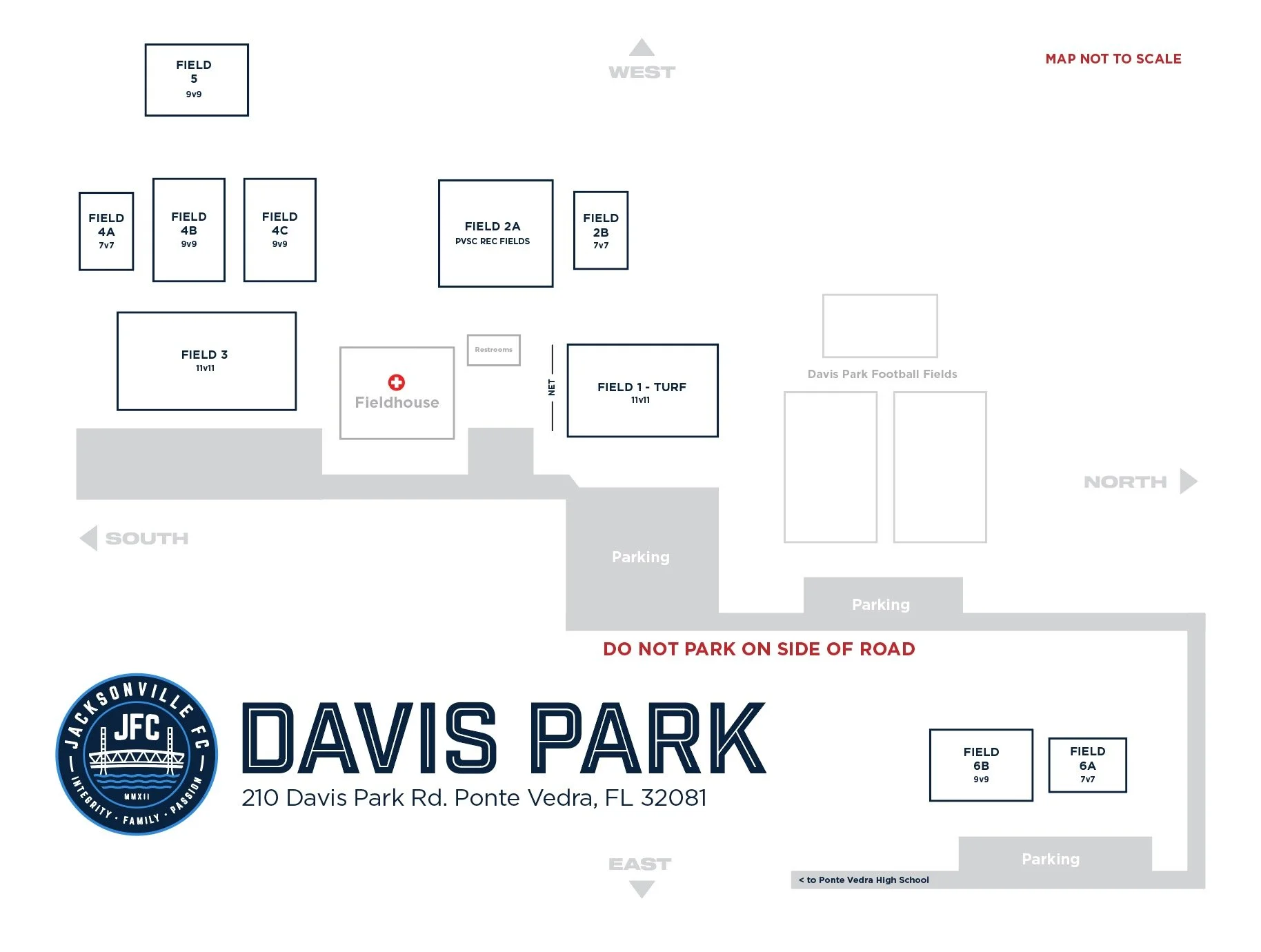 Davis Park is a St. Johns County Recreation & Parks facility that is free to the public. Groups, special events, and sports leagues who wish to use the fields are required to reserve them and pay a fee through the Site Supervisor using the form in the Athletic Facility Use Manual (Field Use Application).