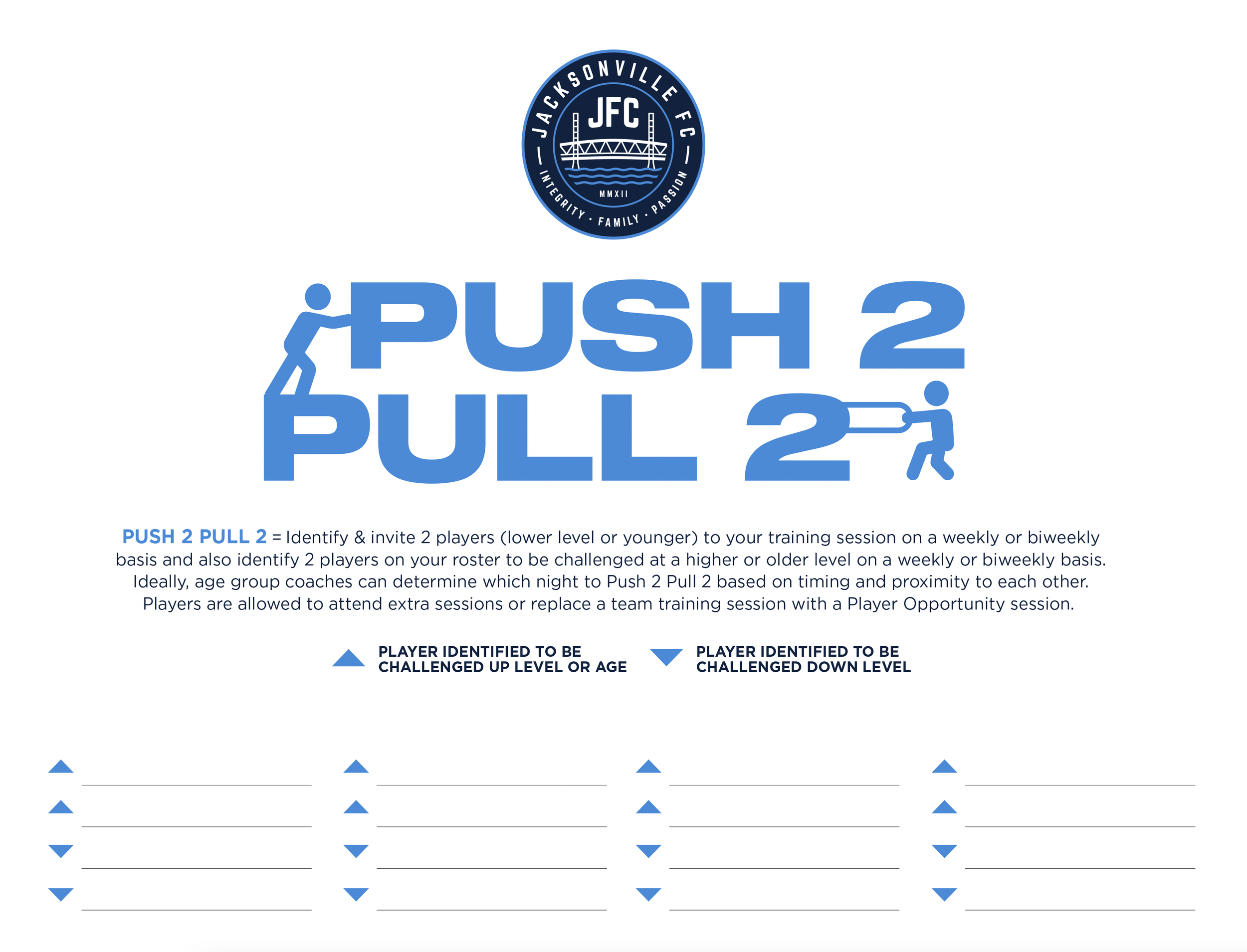 Continue to log Player Opportunities, track availability, and share updates in TeamSnap. These habits keep us aligned, organized, and consistent across the Academy.